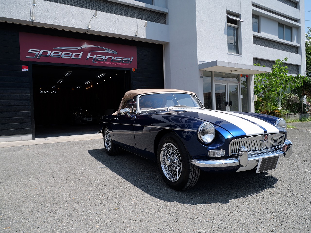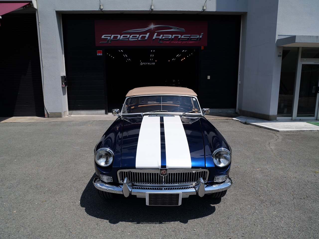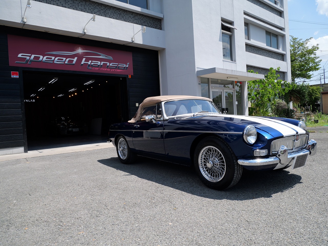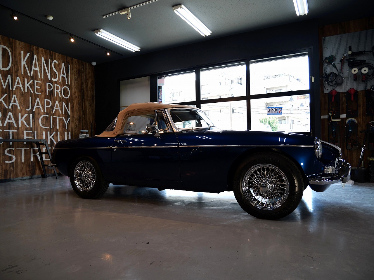 大阪府豊中市よりMGBロードスターをお持ち下さいました!ボディカラーはダークブルーマイカ。