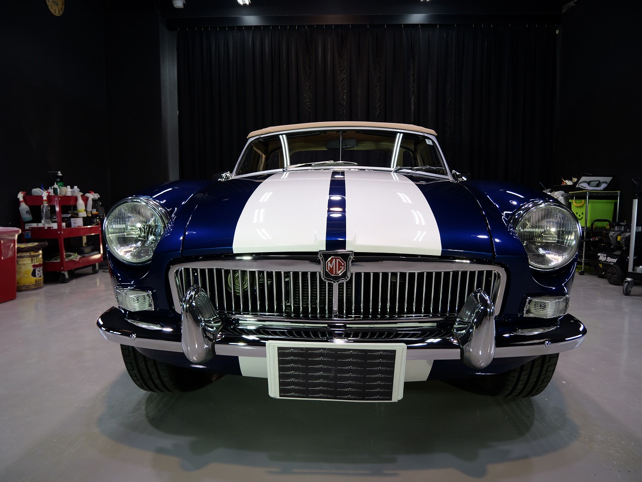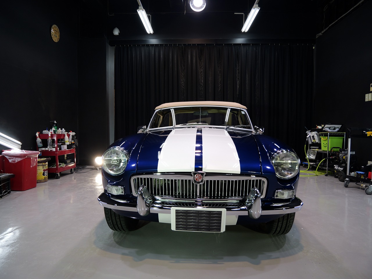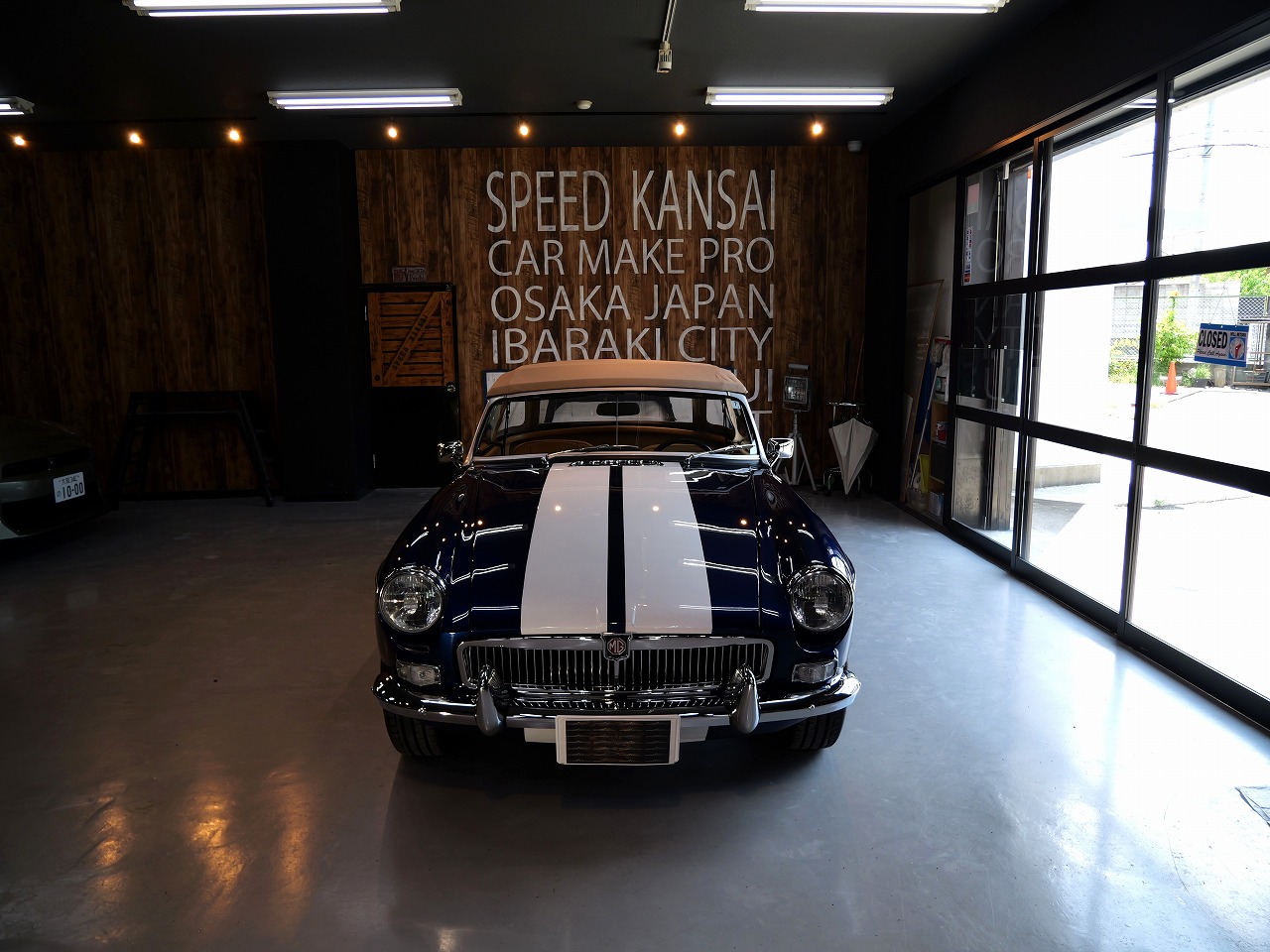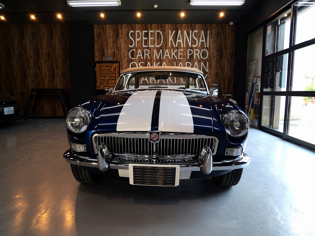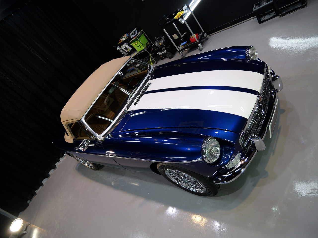 大阪府豊中市よりMGBロードスターをお持ち下さいました!ボディカラーはダークブルーマイカ。