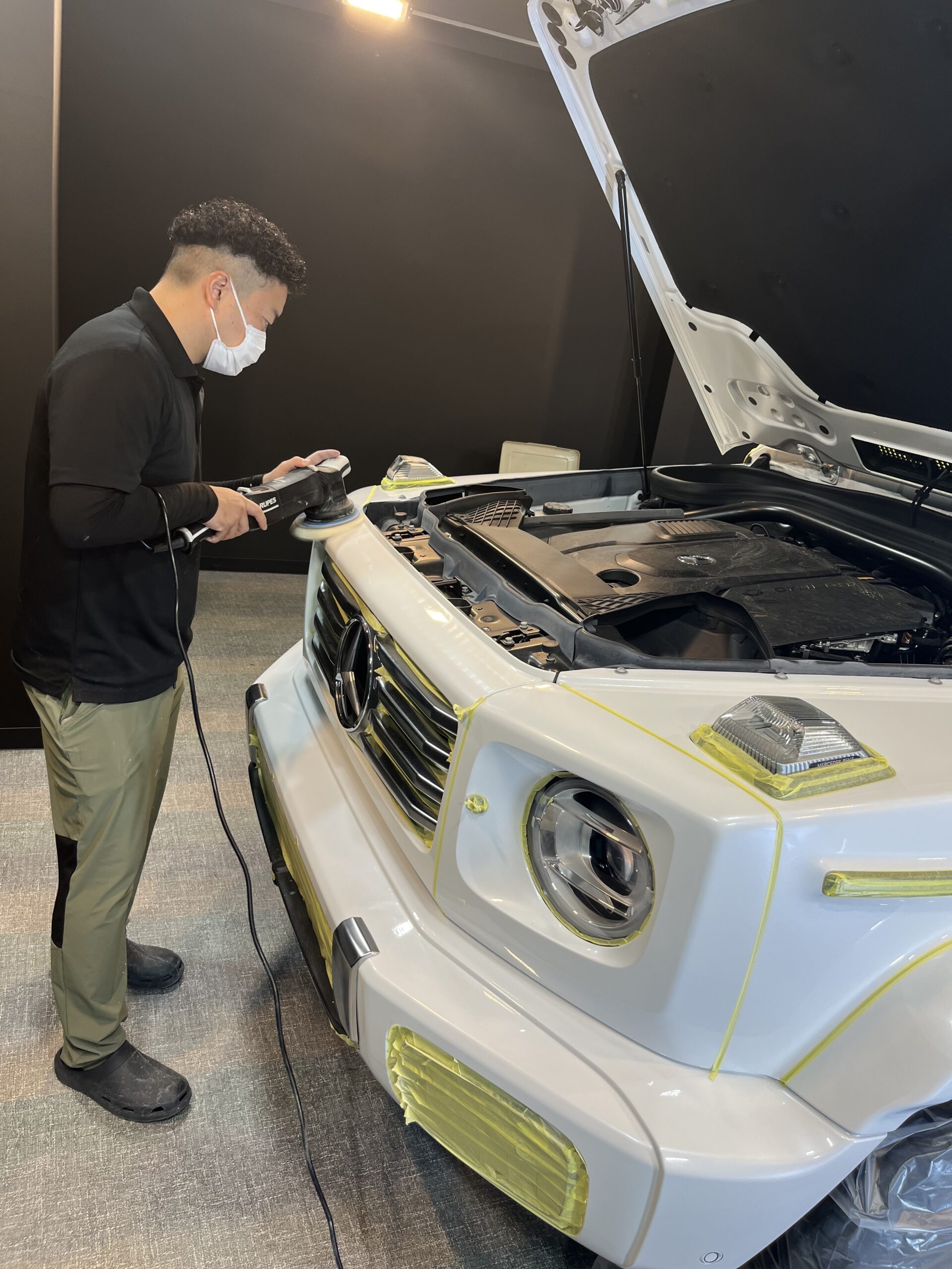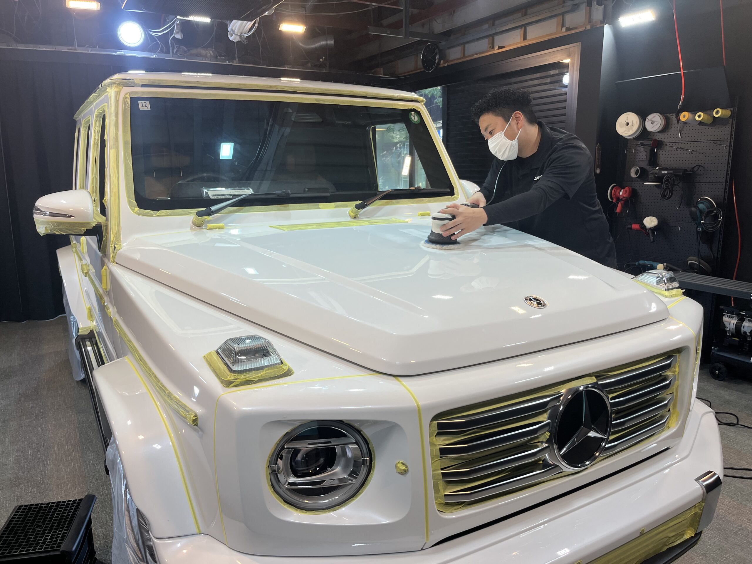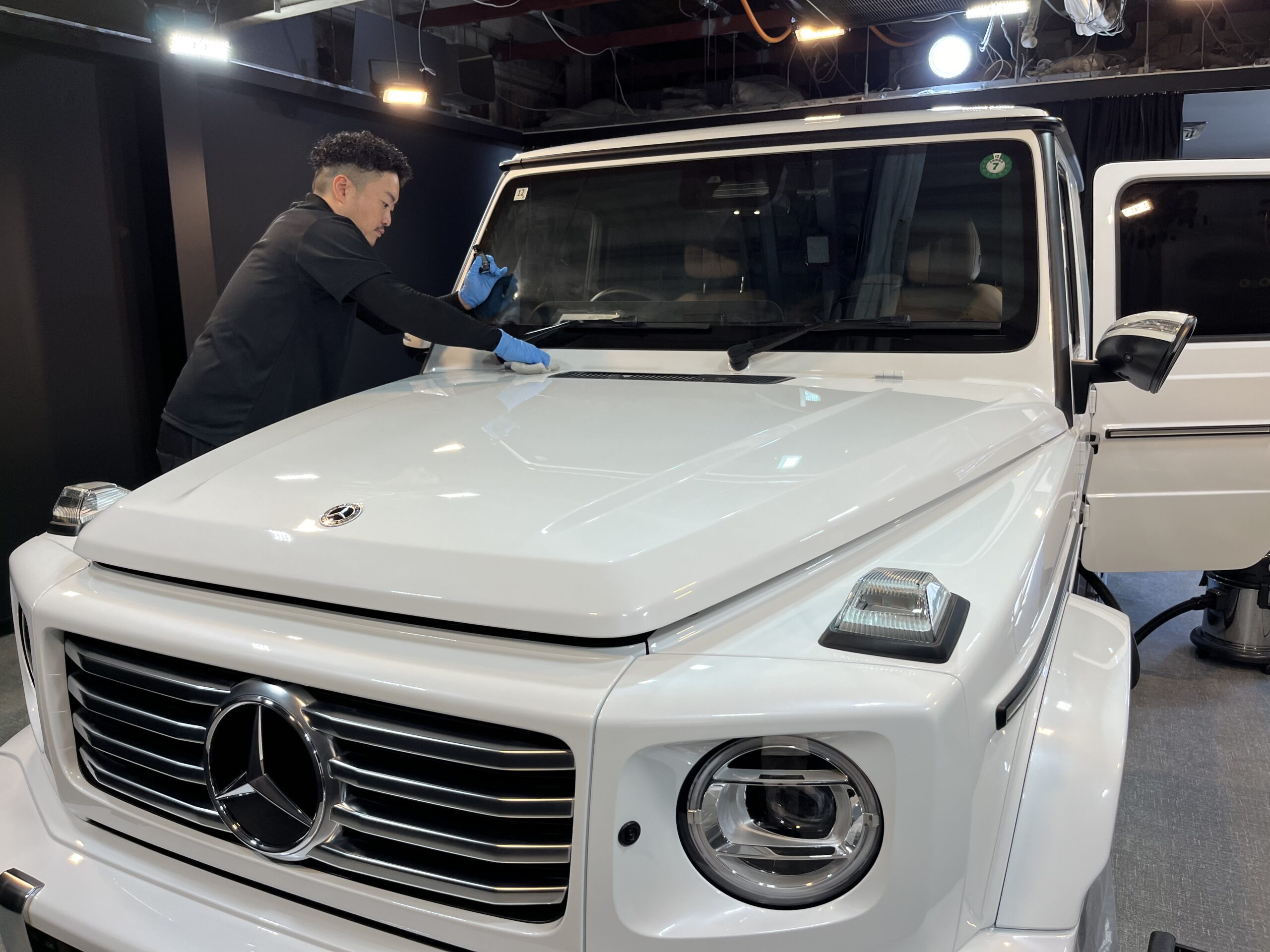 大阪府大阪市よりメルセデスベンツ G450dをお持ち下さいました! 施工はボディにはファインラボセラミックコーティングウルトラ2層/ホイールセラミック/室内インテリアコーティング その他当店のセットでお得なパーフェクトプランです! I様この度は数あるショップの中から当店にお任せ頂き有難う御座いました! 1日でも長く続く様に日頃のマメな洗車宜しくお願い致します。又当店のご自分でメンテナンスを活用して綺麗を持続させて下さい! これからも当店を宜しくお願い致します。