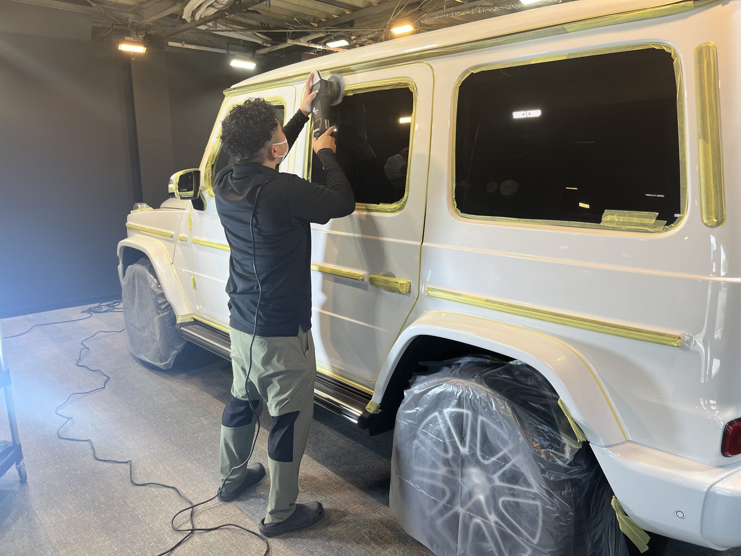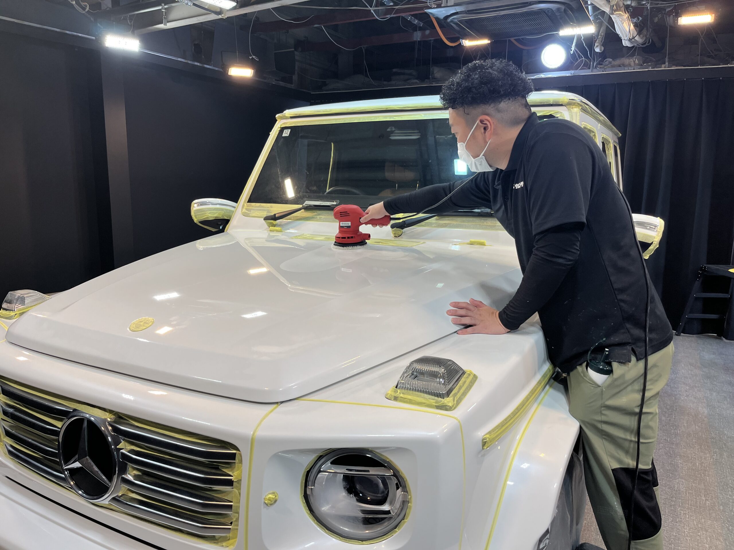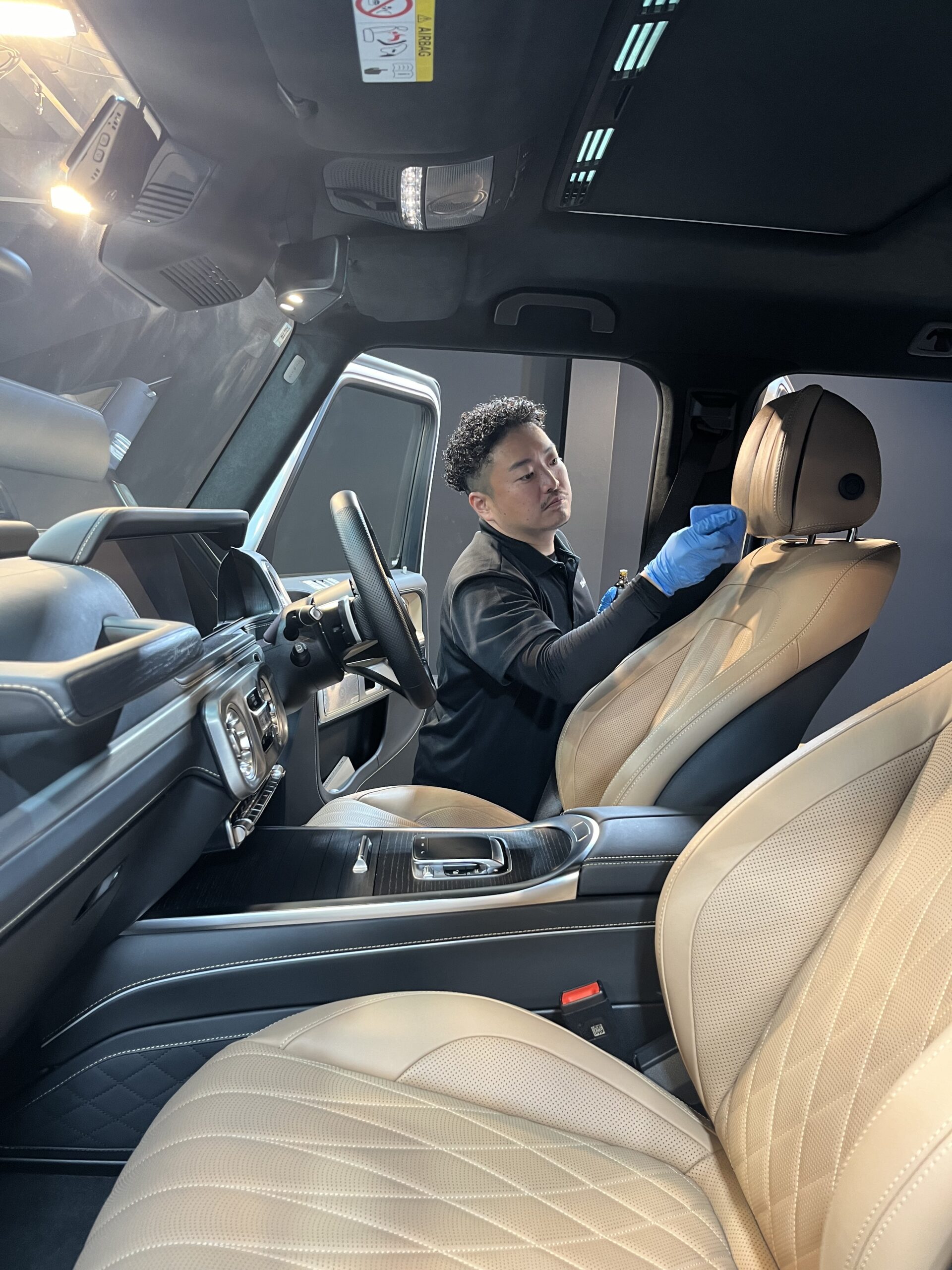 大阪府大阪市よりメルセデスベンツ G450dをお持ち下さいました! 施工はボディにはファインラボセラミックコーティングウルトラ2層/ホイールセラミック/室内インテリアコーティング その他当店のセットでお得なパーフェクトプランです! I様この度は数あるショップの中から当店にお任せ頂き有難う御座いました! 1日でも長く続く様に日頃のマメな洗車宜しくお願い致します。又当店のご自分でメンテナンスを活用して綺麗を持続させて下さい! これからも当店を宜しくお願い致します。