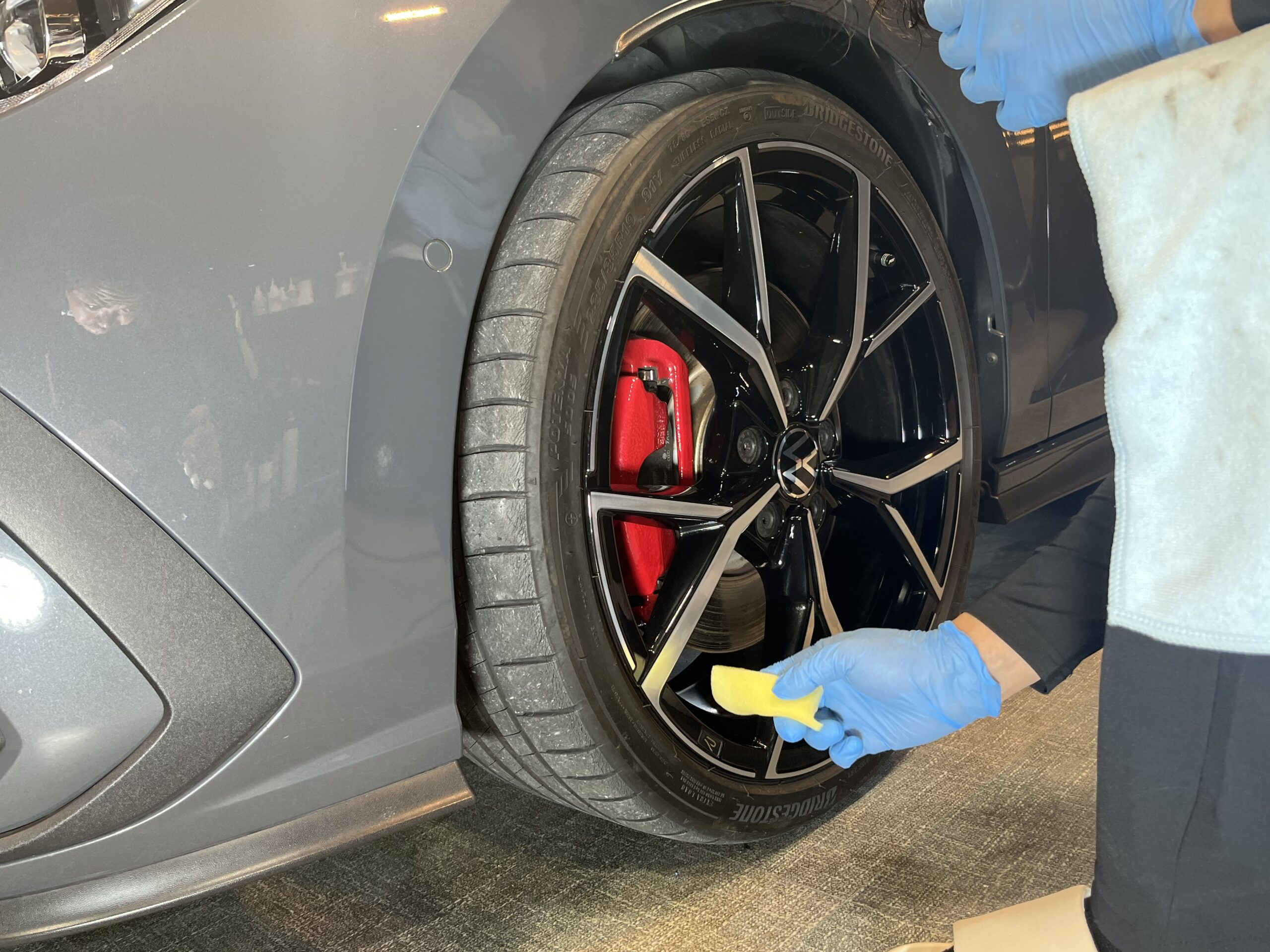 専用被膜がブレーキダストや汚れの付着を防ぎ、ホイールの艶と美しさをキープします。