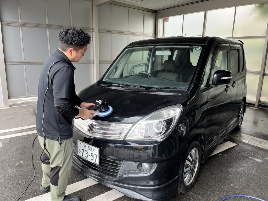 研磨後、こちらのやり方はその後小傷も残りやすいので店内に入れて入念に研磨していかないとダメなんです。