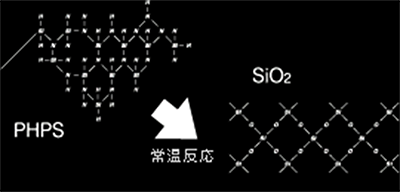 PHPSが反応するのは、空気中の酸素(O2)と水(H2O)。そのクリーンな反応により、緻密で高純度なガラス被膜が形成されます。